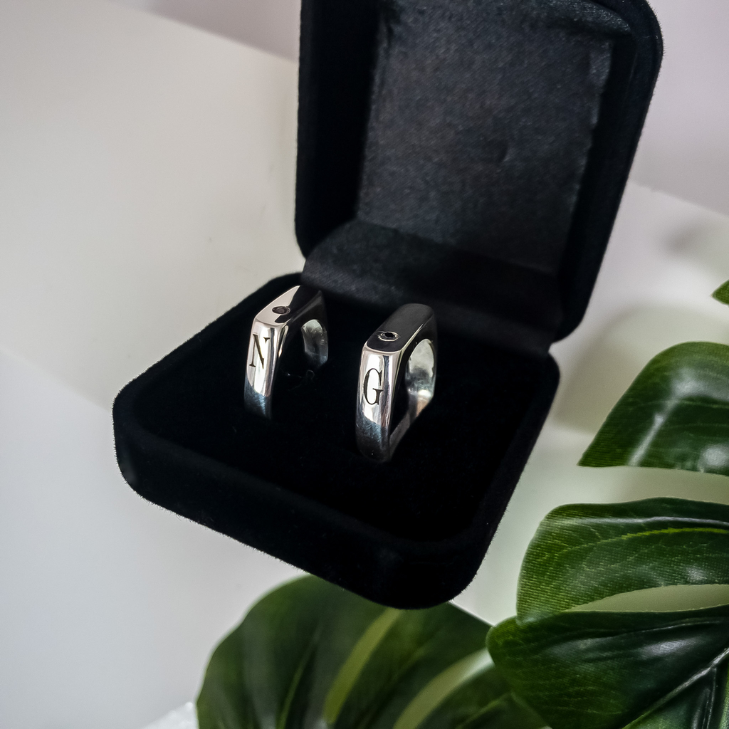Feita com meticulosa atenção aos detalhes em prata 950, ela carrega uma gravação especial na lateral, a letra do seu parceiro, tornando-a única e significativa, além de uma gema de onix para proteção do casal.